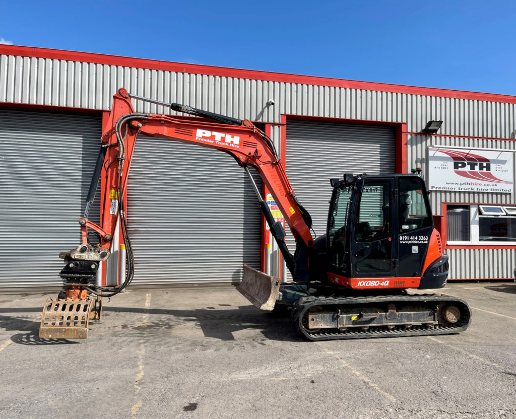 The Kubota KX080-4 is a powerful and versatile 8-tonne excavator, ideal for groundwork, demolition, and site preparation. With a maximum dig depth of up to 4.6m and auxiliary lines for attachments including breakers, it delivers strong performance while maintaining excellent manoeuvrability on restricted sites.